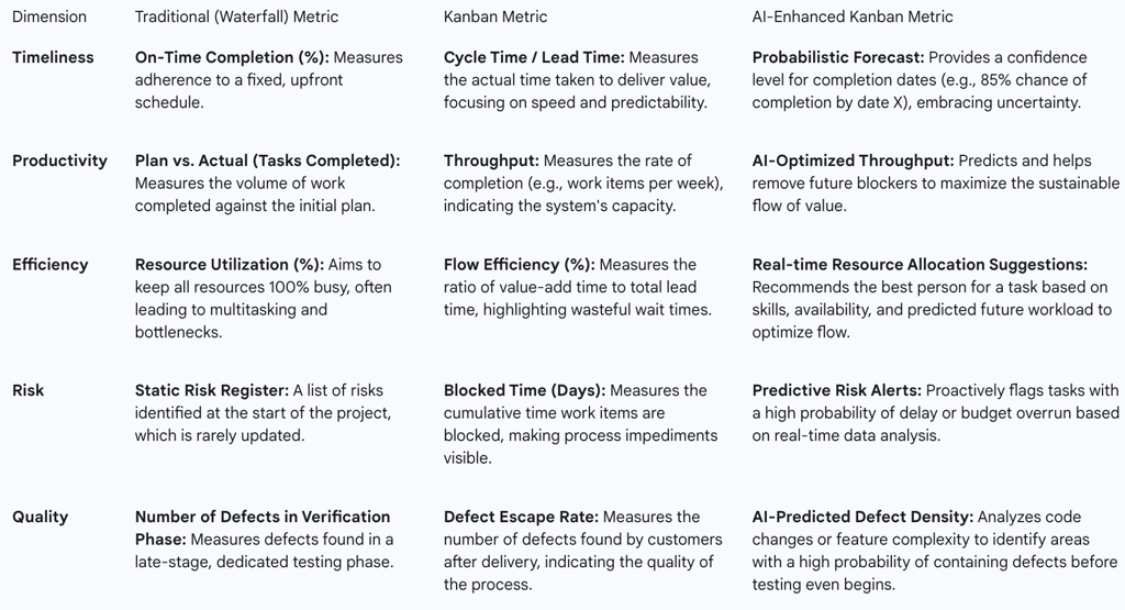 Table 2: Traditional vs. AI-Enhanced Kanban KPIs